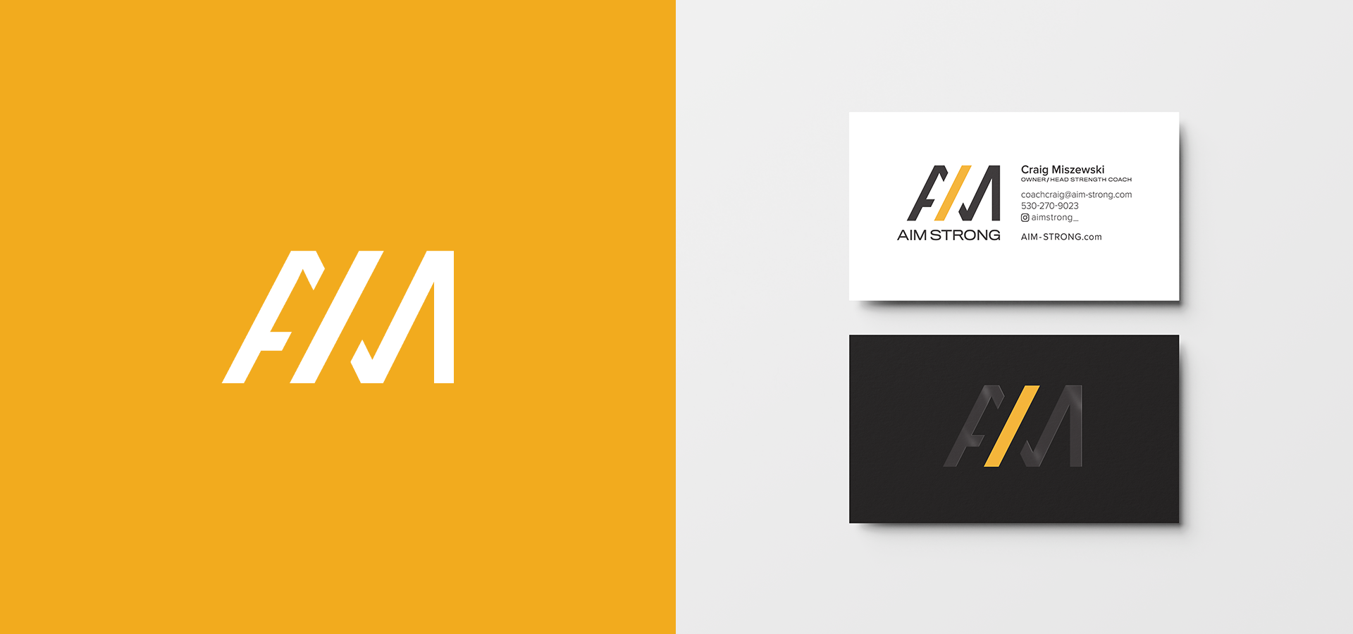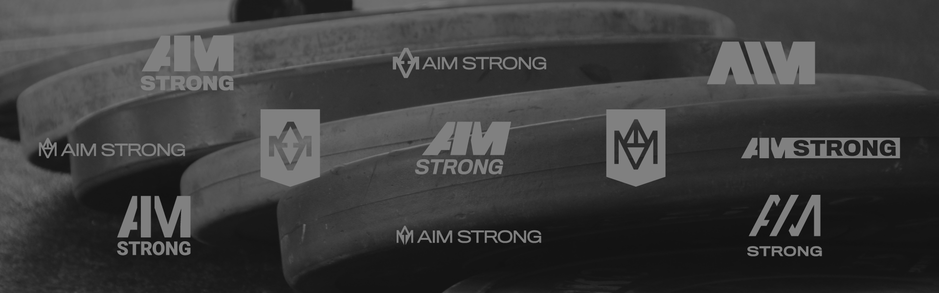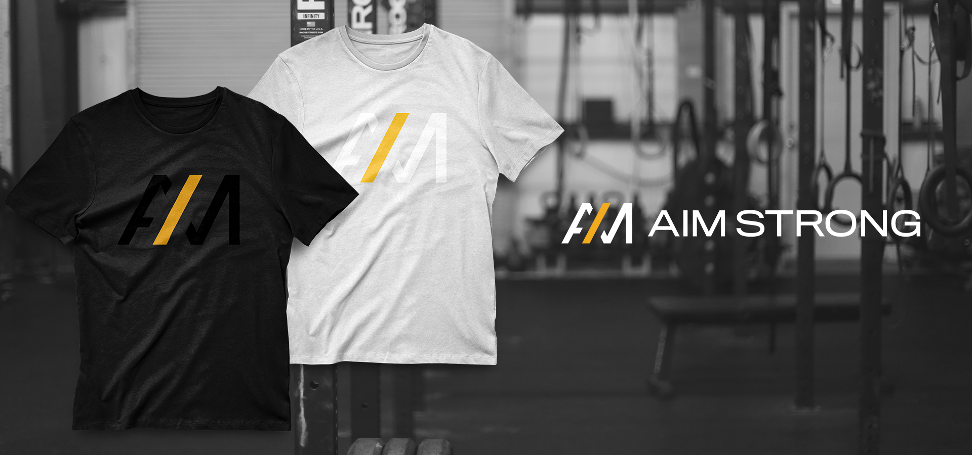 Identity design for AIM STRONG, an online strength and conditioning program for student athletes.