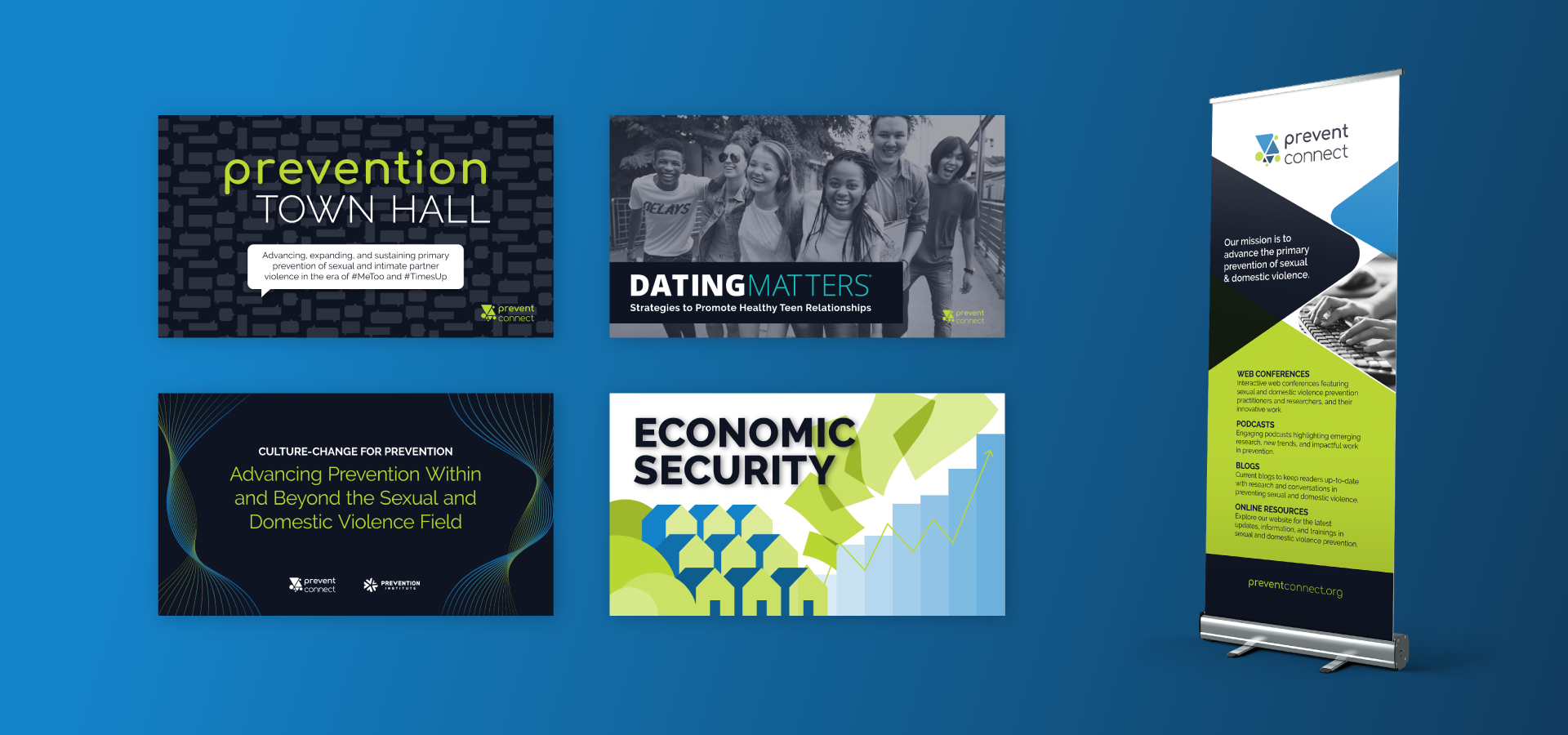 Branding and identity design for Prevent Connect, an online platform focusing on preventing sexual violence.